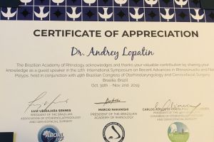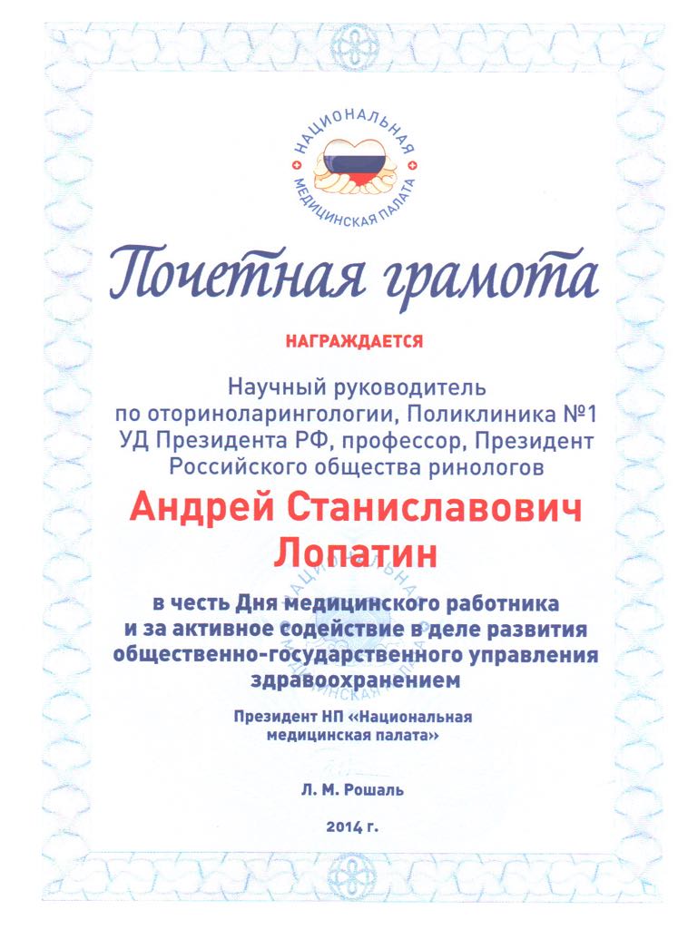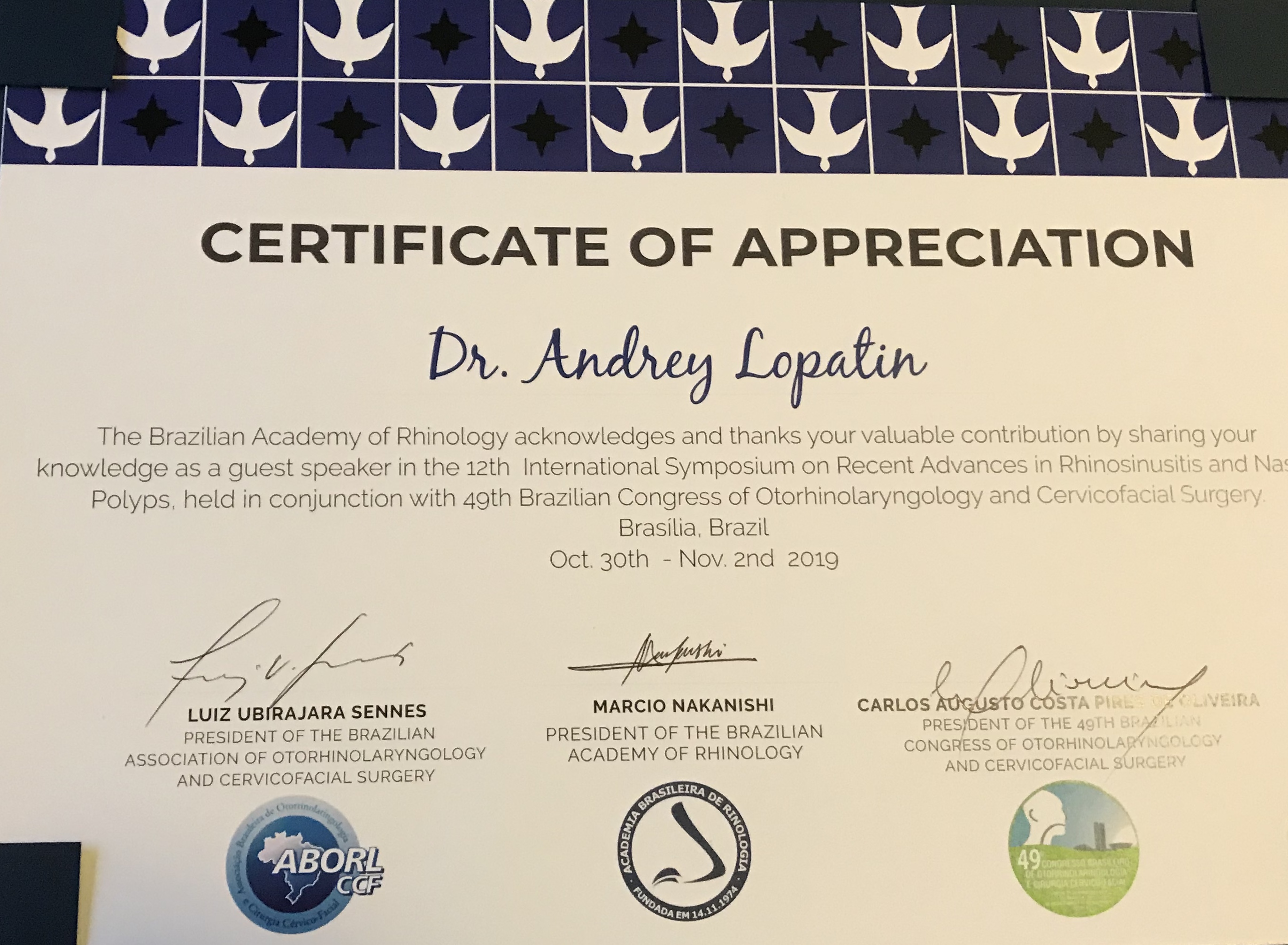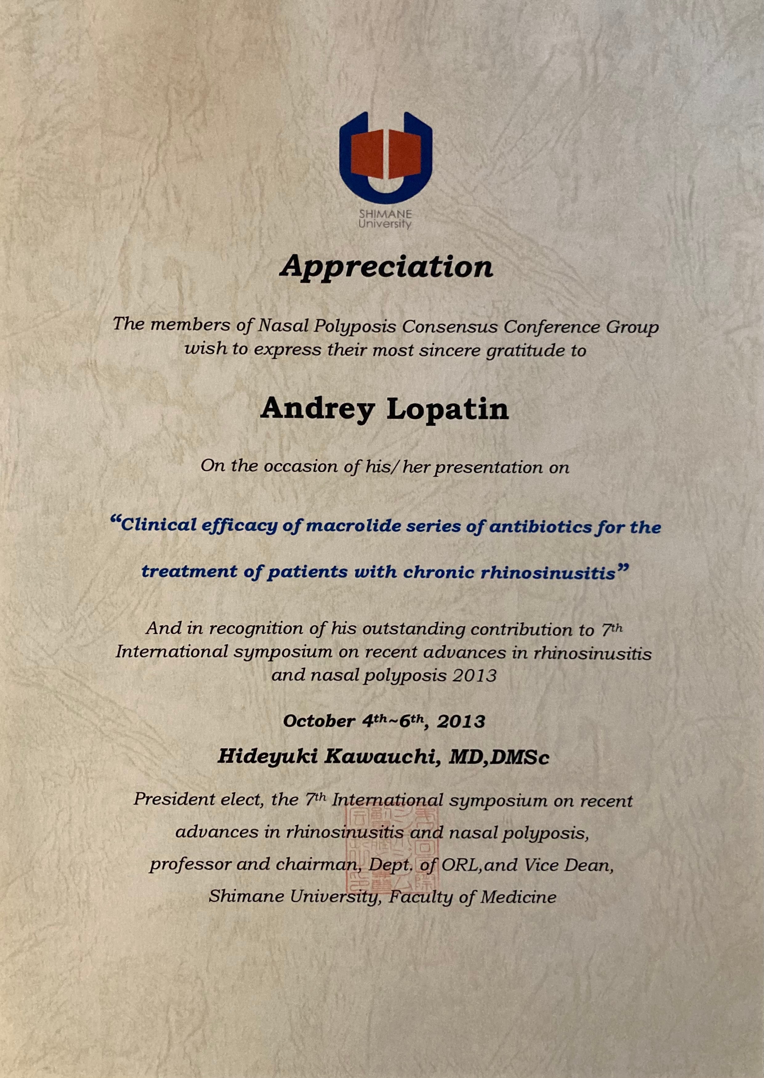 с 2006 по 2009 гг. - Президент международной консенсусной комиссии по полипозному риносинуситу