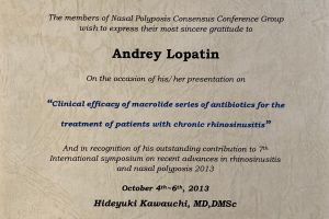 - Недавно разработанный метод длительного послеоперационного лечения макролидными антибиотиками позволил избавить от рецидивов носовых полипов и потребности в повторных операциях при полипозном риносинусите многих пациентов (Efficacy of long-term low-dose macrolide therapy in preventing early recurrence of nasal polyps after endoscopic sinus surgery. Int Forum Allergy and Rhinology, 2014).