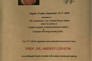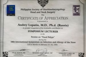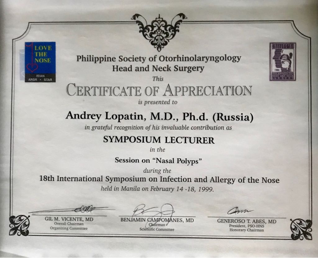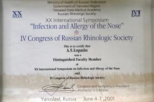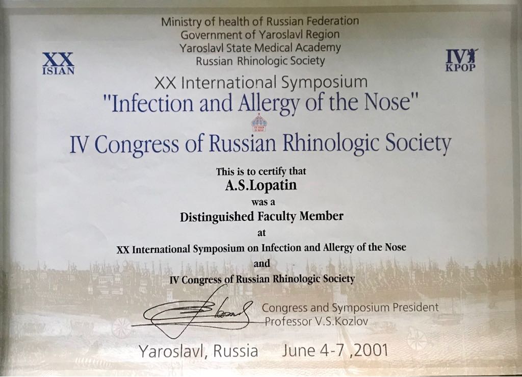 с 1998 по 2008 гг. - Представитель России в Президиуме Европейского ринологического общества